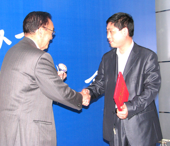 全国著名白酒专家沈怡方为河南棠河酒业有限公司总经理常守臣颁发